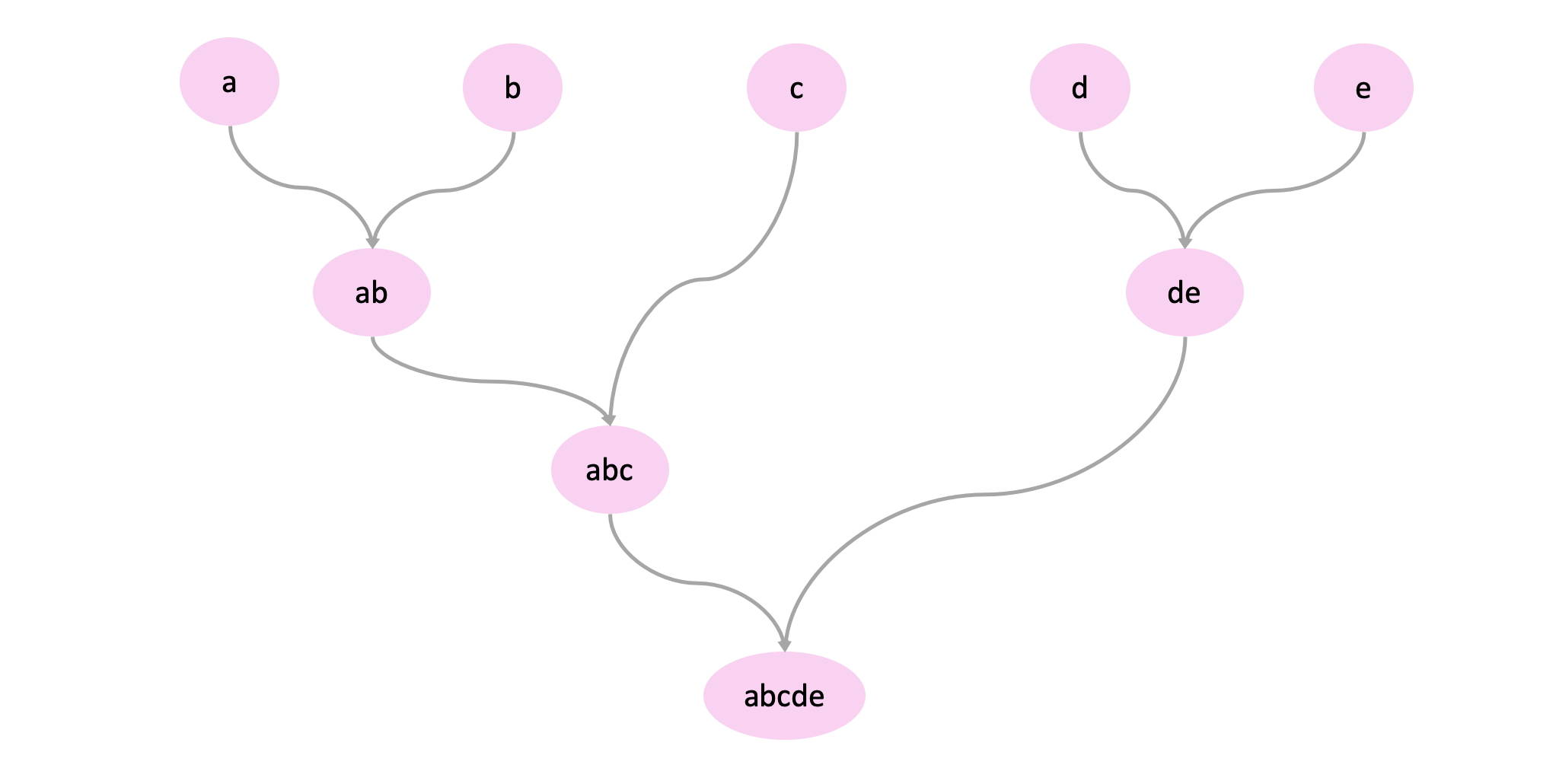 - here we see each sample starts as its own cluster and is gradually merged into larger clusters